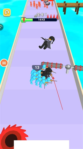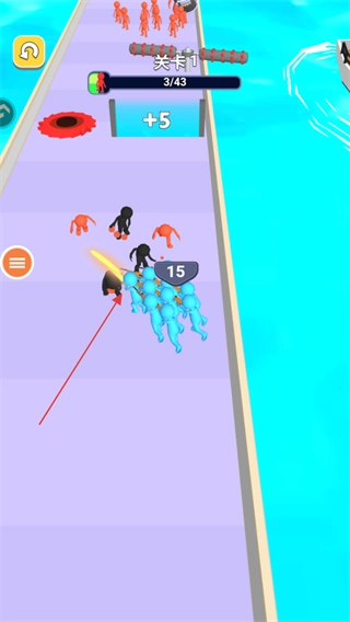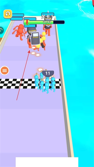 1、进入关卡后,操控蓝色小人组成的队伍,主动靠近黑色敌人并发起攻击,通过击败敌人来让己方队伍变得更壮大。