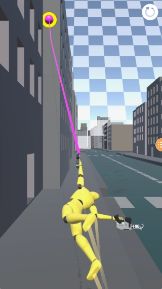 3、场景中的抓钩目标点分为固定点与动态点,预判移动轨迹才能精准命中,成功挂钩后可随动态点移动实现快速位移。