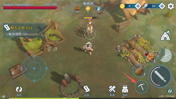4、靠近好,点击屏幕右下角的“石镐”,解放居民。
