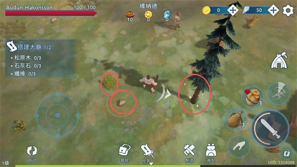 1、通过砍伐树木、开采矿石、狩猎动物等途径获取各类资源,并对所得材料进行合理分配,将其分别用于建筑升级与装备制作这两项用途。