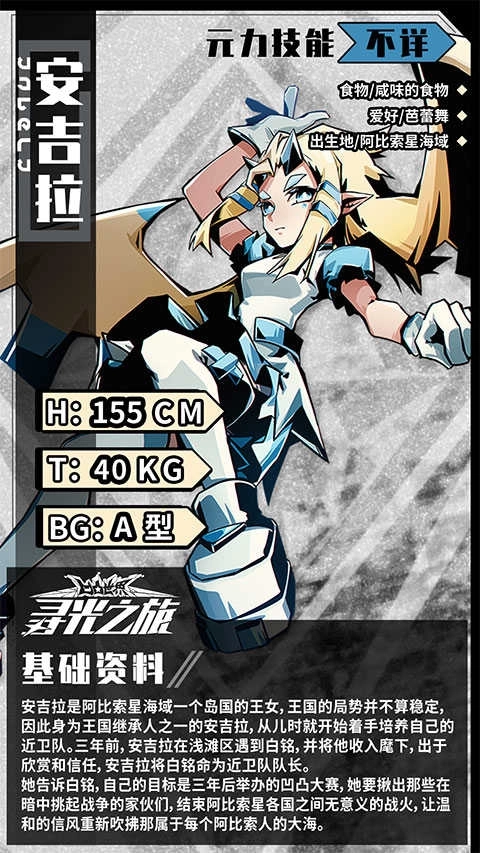阿比索星海风孕育的王女,目光如潮汐般坚定。她组建近卫队,不只为守护权柄,更为拨开战争迷雾,寻找幕后黑手。自白铭成为队长那天起,她的征途便不再局限于王座,而是那片重归安宁的蔚蓝整片海域。