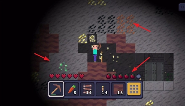 1、进入地图后,用铁镐挖掘速度很快,这里资源丰富,所有资源都能收集起来。