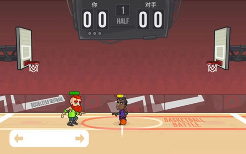 2、左下角双箭头控制移动,右侧按住跳投,空中需及时松手才能出手。