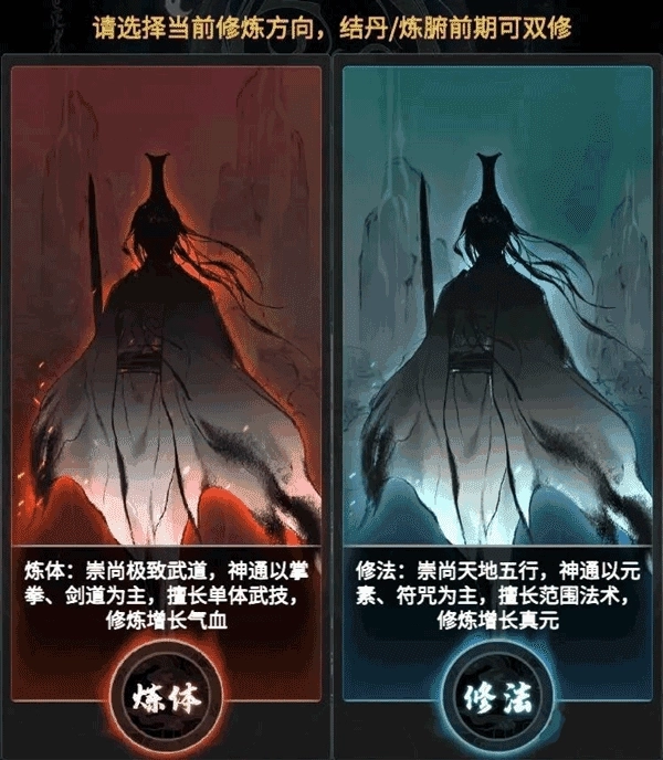 开局选择不必纠结优劣,修法偏重真元爆发与法术穿透,练体则夯实气血根基与近战压制,二者突破时属性增益互补,实际战力取决于资源投入深度而非方向本身。