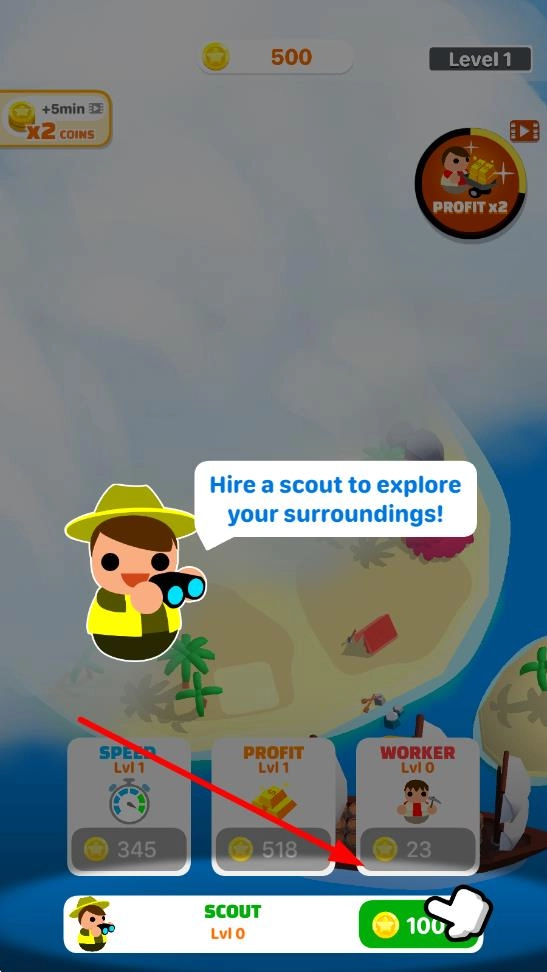 刚进入对局时,先派基础探险家去探索岛屿的初级区域,收集水果和木材来维持生存,同时解锁“简易背包”以增加携带物品的数量。