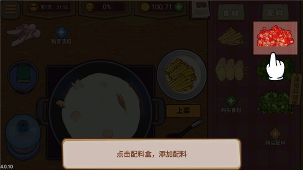 3.随着游戏的进行,玩家可以升级自己的摊位,购买更好的设备,甚至扩展到更大的店面。