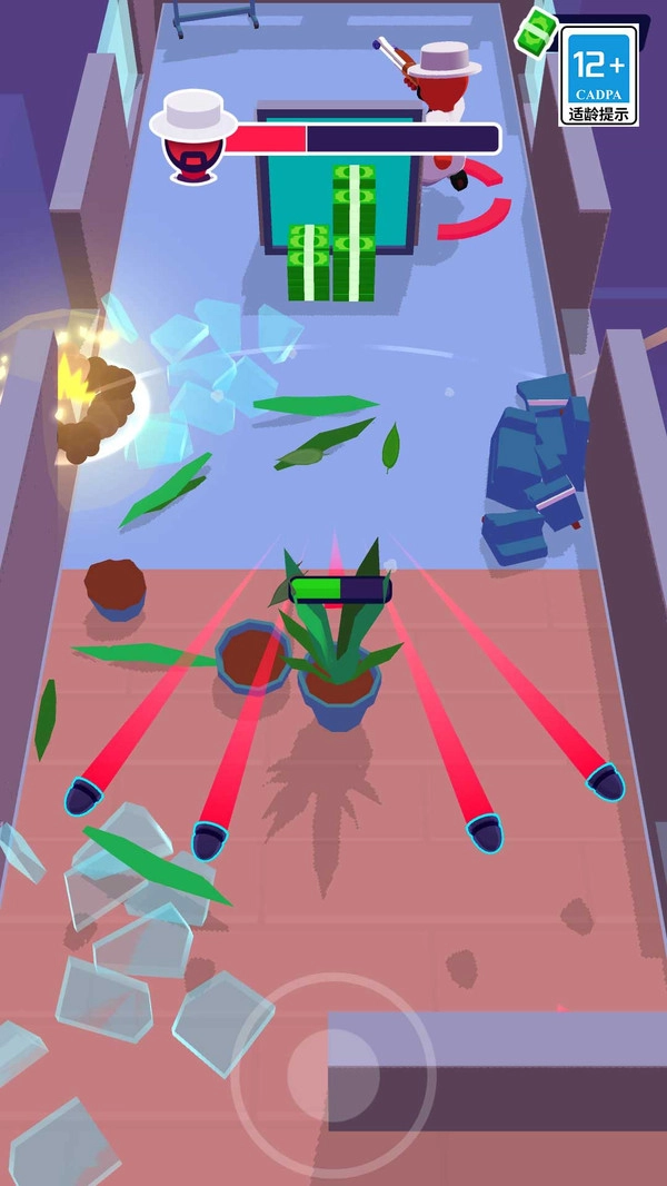1、借助场景中的掩体,在敌人尚未察觉时,躲在盆栽、柜子这类遮蔽物后方,待敌人靠近后,发起突袭。