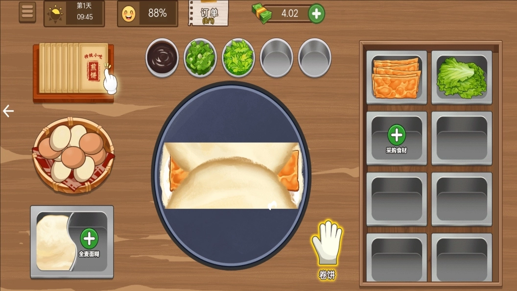 3、优先升级高频使用的制作工具,例如优化摊饼设备,加快制作速度来应对更多客人。