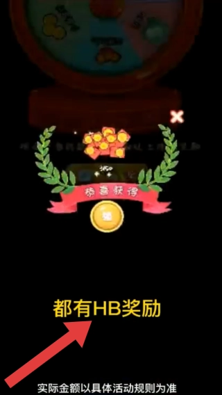 3、实体信息有“恭喜获得”“都有HB奖励”“实际金额以具体活动规则为准”,属于活动奖励提示,参与转盘等活动后的奖励告知。