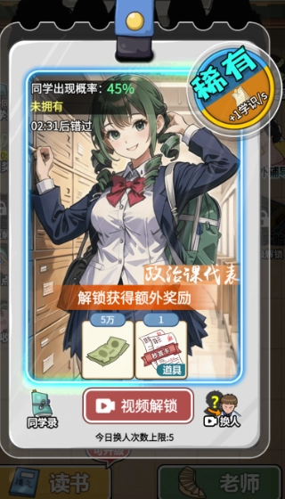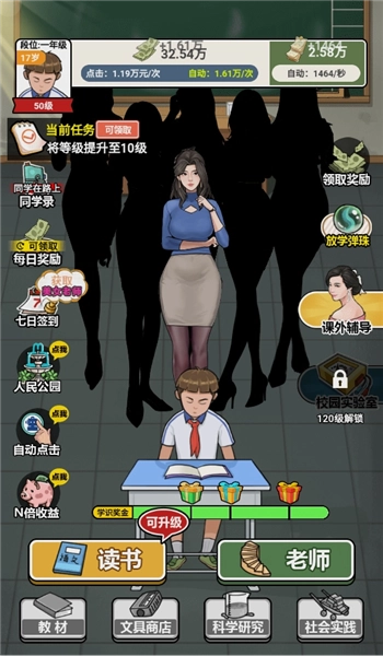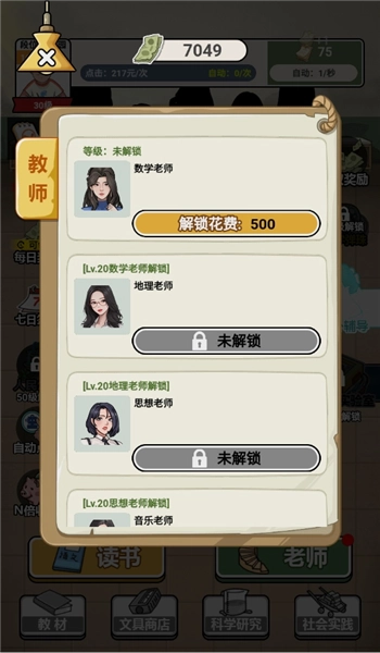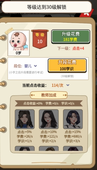 6.点击老师界面选择老师可以帮助我们快速增加学识。