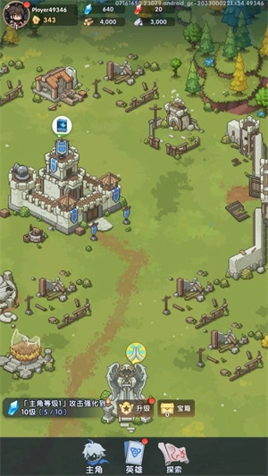 3、点击升级按钮可以强化主角的属性以及提升英雄们的等级。