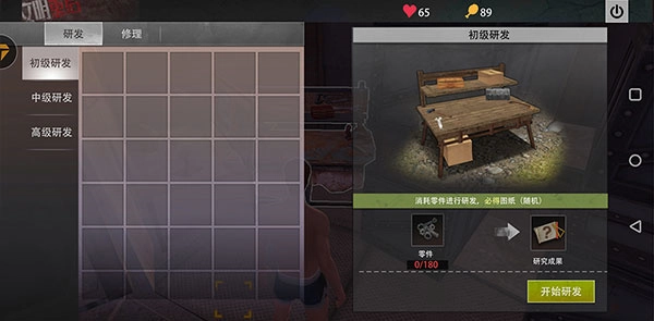 研发台:研发台更是缺一不可的存在,因为游戏战局中的物品或者装备都是分低、中、高等级的,我们如果想制作出来,研发台就必须有同时也要对应升不同的等级,否则我们即使有了物品或者装备也无法去研究配方制作出来。同时研发台也可以花一千零件来随机获取配方这就便捷了我们不用在游戏战局中去寻找获取物资来学习并制作。