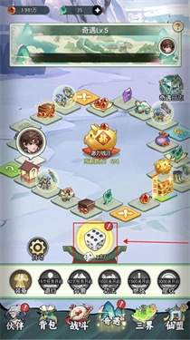2、玩家可以通过完成主线收集奇遇骰子,点击即可随机点数,在地图上获取各种资源,走到升级格子还能提升奇遇等级。