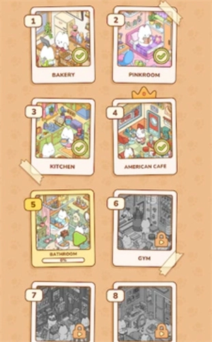 3、猫咪互动彩蛋:每间房都有专属猫咪,装饰时会触发翻滚、跳跃等可爱反应,增加趣味。
