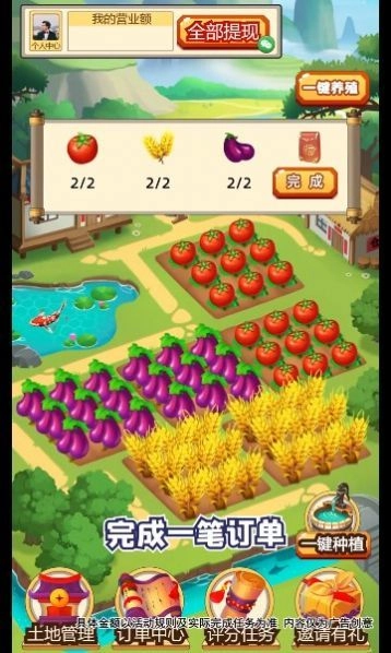 田园小院红包版:你可以打造一个充满丰收治愈感的小院,解锁更多建筑物来建造梦想中的农场家园。这里有更多挑战和收获,还能为你赚取额外收益,让你提前准备食材,同时创建丰富多彩的商业模式。每天玩游戏都能领取更多红包,你将扮演一位美女角色运营自己的农场,制作步骤简单易行,游戏内还有丰厚的红包奖励。在当前的v1.0.2版本中,田园小院红包版更新了全新的玩法和内容,快分享给身边的小伙伴吧!