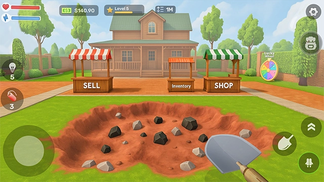 3、丰富的道具和装备强化系统,为挖矿之旅增添变化,从强力铁锹到磁能爆破器,每一种工具都有其独特用途,提升探索效率。