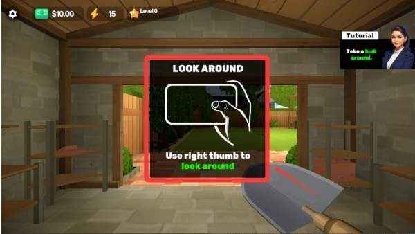 1、使用右手大拇指在屏幕上滑动,能够自由转动视角来观察周围的环境。