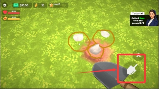 3、根据任务引导或指示,前往指定区域,到达目标后,使用铁铲在地面挖掘,获取隐藏在地下的各种矿物。