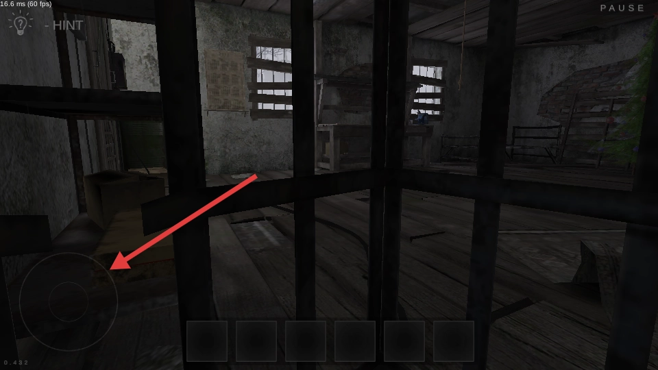 1、开局先和铁笼子培养感情,等疯子出门倒垃圾的空档,赶紧疯狂点击那些看起来可疑的墙缝。