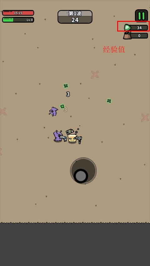 右上角是用于商店购买武器的能量值,怪物死后就会随机产出,靠近即可拾取;