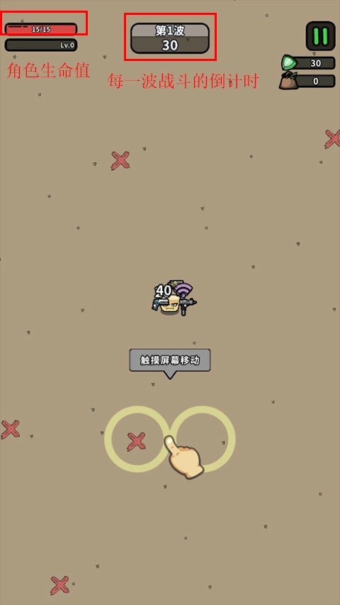 滑动屏幕下方即可控制角色移动,自动射击打怪;