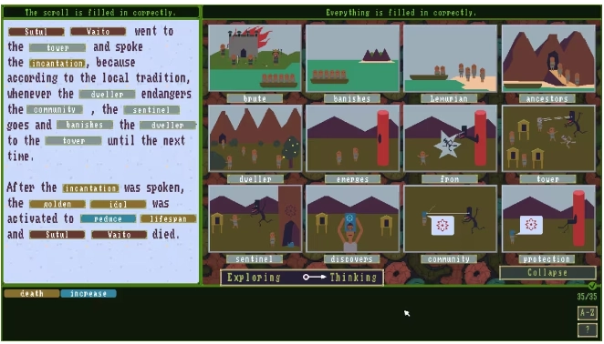 2、岛上大事就全岛民投票,小事就由四位代表内部投票,若出现2比2的情况,便会让守护者(Sentinel)也参与进来。第一关中,现任守护者是Sutul Vaito.四位代表分别是:男性代表Vyrlis Mamgo:负责管理岛内男性女性代表Kula Stirna:负责管理岛内女性农业管理Kruplu Zarno:负责岛内耕作指挥和食物分配(农业天才,他还会改良作物)儿童关怀Lavu Mata:负责儿童的教育启蒙和健康问题(下图中的启蒙图卡就是Mata阿姨提供的)p.s.女性代表Kula因为不喜欢男性代表Vyrlis故意和其作对,投票总是对着干;儿童关怀的Lavu是个极端保守派。