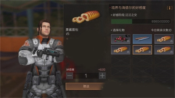 4、101交易市场的海尔德每天都可以送10次礼物 ,满5000好感度可以获得图纸(非常不错的东西)目前我发现便宜而且好感度增加很多的一个是果酱面包,一次650