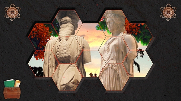 然后画面会显示让玩家们完成一个杂乱的拼图,玩家们只要点击每块碎片就可以让碎片旋转,然后拼成下面的图形就可以完成雕像了。