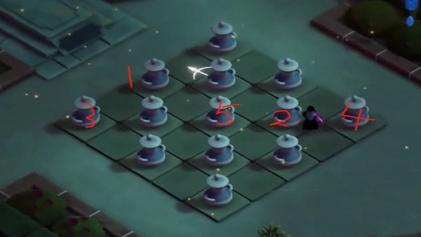 玩家可以根据下图标号顺序的茶壶进行攻击,只有按照顺序攻击才能顺利的解开这个谜题拿到最终的奖励。