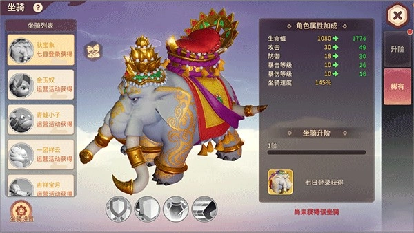 游戏中的坐骑分为两种:普通和稀有。普通的坐骑通过主线任务即可获取,而稀有坐骑则需要参加游戏内的特定活动来获取。对比普通坐骑,稀有坐骑的专属化技能与属性增益都会更加强力一些。