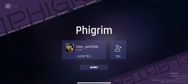 1、打开Phigrim最新版本,新玩家需要先注册账号登录,也可以选择以游客身份进行游玩;