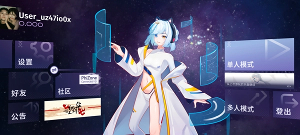Phigrim是一款以社区驱动为特色的二次元音乐手机游戏,核心玩法采用下落式音游模式。玩家将化身为领航员翎,与工程师翊并肩踏上探索无垠宇宙的旅程,在绚烂星河间跟随音乐节奏,尽情领略音符带来的独特魅力。 游戏了功能完备的社交平台,玩家不仅能在此自由交流互动,还能分享、体验其他玩家自制的各类谱面。通过评分系统支持心仪的作品,更能解锁丰富多彩的音游乐趣。对音乐游戏感兴趣的玩家,这款充满创意与互动性的作品绝对不容错过,快来开启你的音乐宇宙冒险吧!
