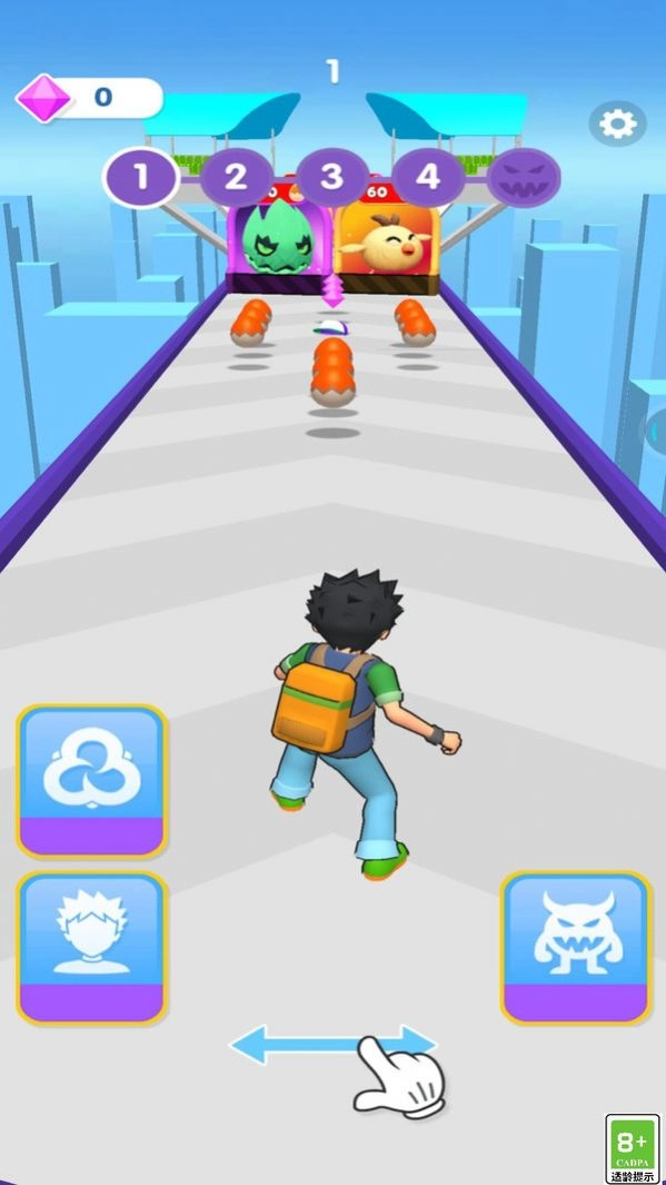 2、创新融合跑酷元素,操控幻兽在赛道上疾驰,躲避障碍,击败敌人;