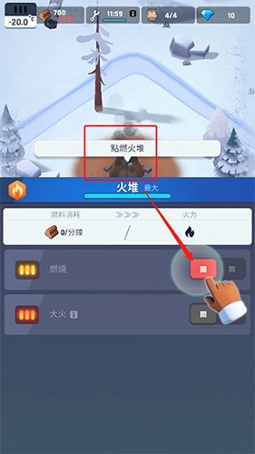 5、当夜晚降临,气温骤降,达到不适宜的温度时,我们需要将大火的火力切换为最大,以保持合理的生存温度。