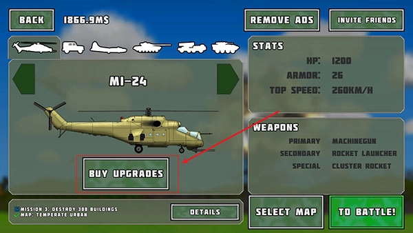 3、当购买成功后,点击【BUY UPGRADES】可进行武器升级。