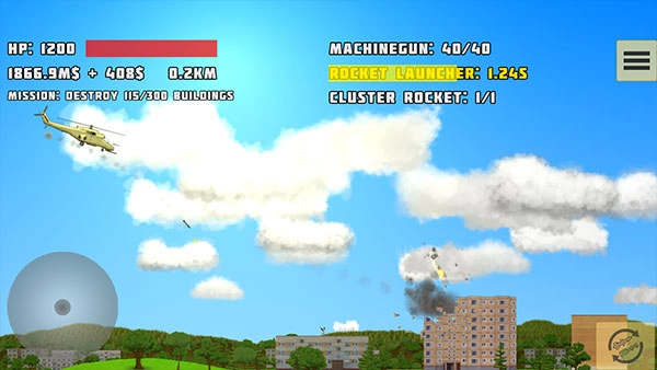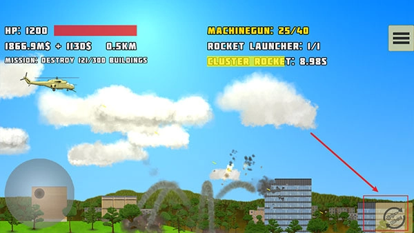 5、建筑物破坏——朝着不同的建筑物发射火箭,观察它们轰然倒塌的过程。