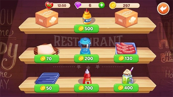 尝试升级所有可能的厨房游戏设备,从咖啡机和电饭锅到披萨炉和牛排机。