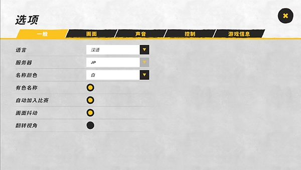 2、选项里面可以设置语言、服务器、画面、声音、控制、游戏信息;