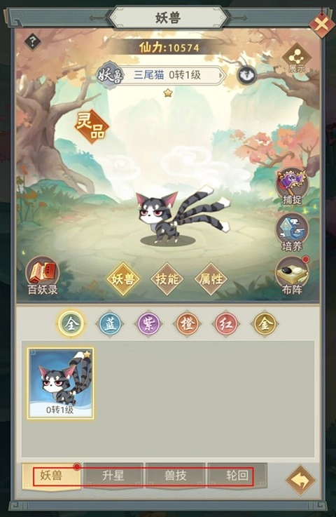 3、玩家在修仙的过程中还可以收服可爱的妖兽,可以对其进行升级、进阶等,提高战斗力。