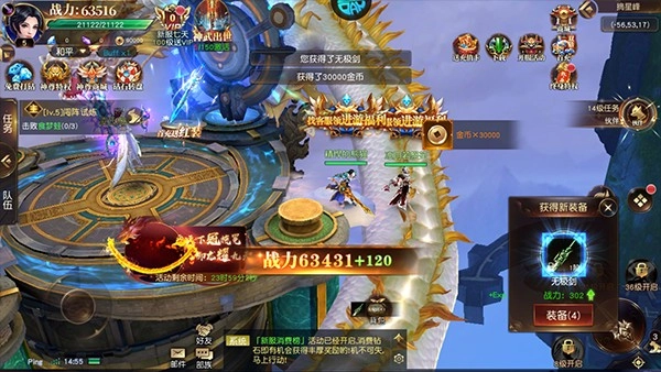 2、进入游戏后玩家就可以开始主线任务啦,通过完成主线任务获取大量经验、装备等,提高等级战力,解锁坐骑、翅膀等丰富玩法。