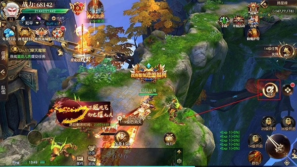 3、游戏还可以挂机战斗,玩家点击右侧的挂机按钮就可以开启挂机,解放双手啦!