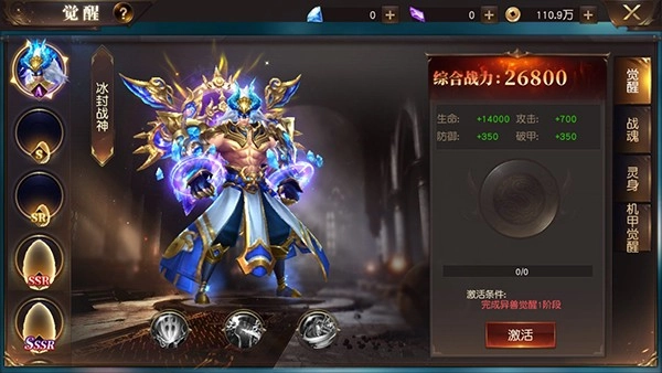 7、游戏内还有独特的觉醒技能,解锁后可以变身为强大的战神,大幅提高战斗力。