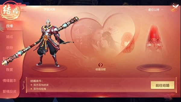 1、玩家在游戏内通过添加好友,与好友一起组队挑战,日久生情,,发出爱的告白,就可以在游戏内结为夫妻。