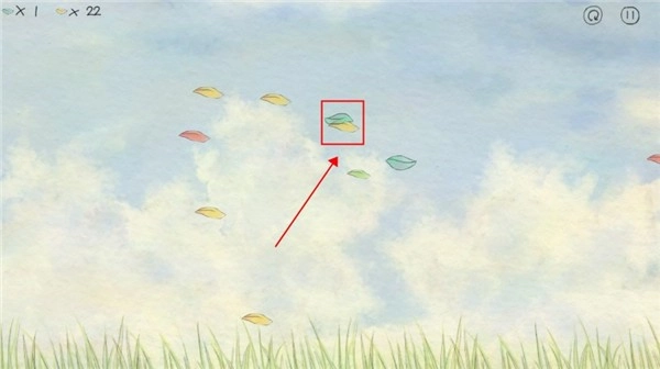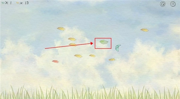 4、因为我们是逆风漂流,因此我们需要触碰绿色叶子,绿色叶子可以使你获得一个加速效果,长时间没有加速你就会迎面出来的风吹到屏幕之外,直接导致游戏结束