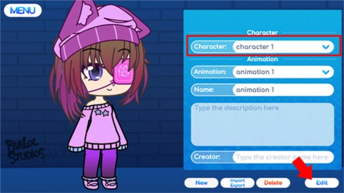 2、进入动画编辑界面后,同样点击New来创建我们的动画新项目,然后在Character选项中选择我们的角色,最后点击右下角的Edit选项