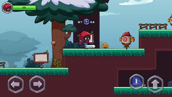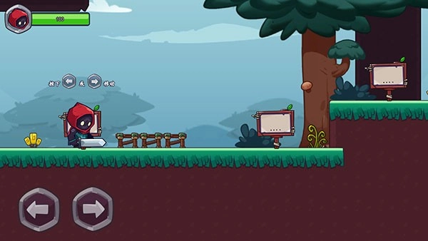 进入游戏关卡后,点击左下角的按钮,即可操控角色前进或后退。
