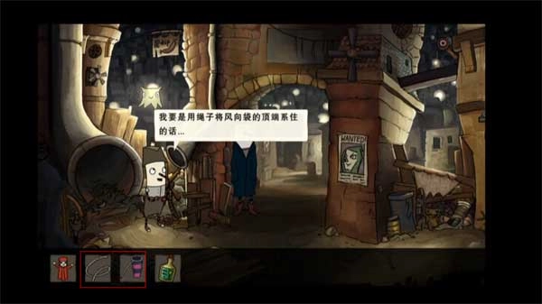 1、启动游戏后,你会看到初始就有的四件工具,把绳子和风向袋组合起来就能得到网兜,这个网兜可以用来抓捕那些飞在空中的小鸟。