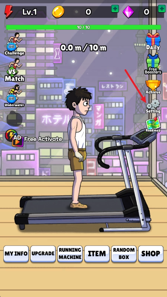 1、进入游戏后点击屏幕即可在跑步机上跑步。