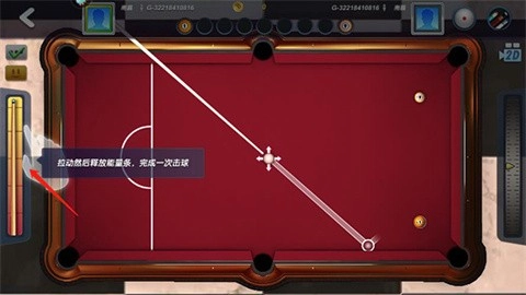 3、找准方向后,拉动然后释放能量条,就可以击球。