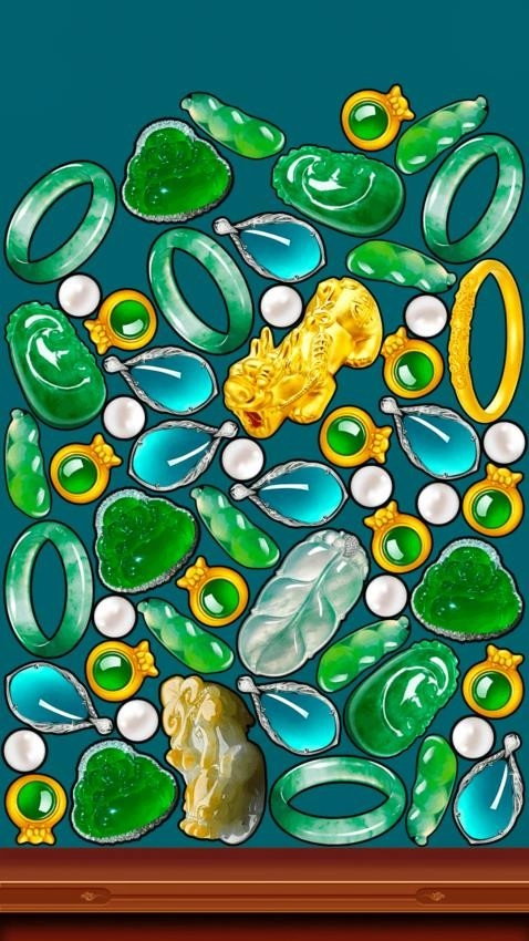 2、小珍珠到大翡翠,中间需要合成各种各种精美绝伦的玉石翡翠,游戏操作简单,难度低上手快,男女老少都能玩,主打一个休闲放松。